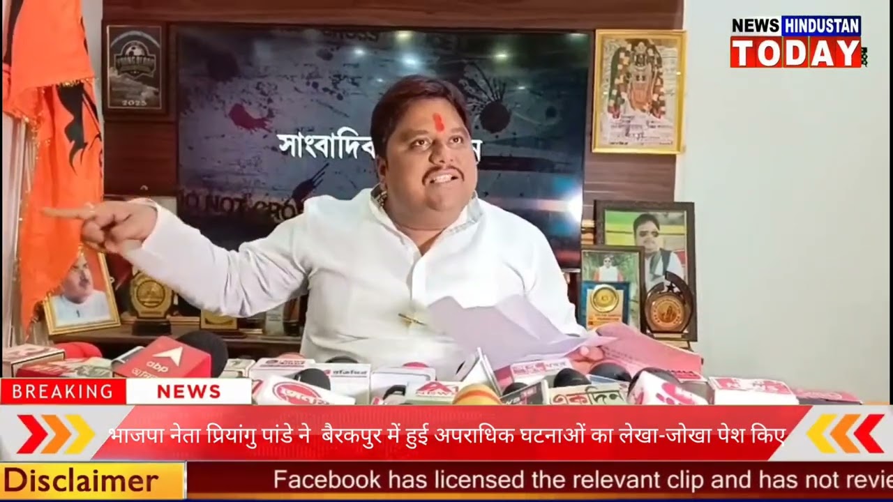 बुधवार प्रेस कॉन्फ्रेंस कर भाजपा नेता प्रियांगु पांडे ने विगत एक साल में बैरकपुर में हुई अपराधिक घटनाओं का लेखा-जोखा पेश किए। अपराधिक घटनाओं को लेकर वह एक वीडियो बनाए है। जिसे बैरकपुर संसदीय क्षेत्र के प्रत्येक गली मोहल्ला एवं आमजनों तक पहुंचाना चाहते है। उनका आरोप है कि चार जून को पार्थ भौमिक को सांसद निर्वाचीत हुए एक साल हुआ। बैरकपुर से गुंडाराज खत्म करना उनका चुनावी वादा था। वादा के विपरीत अपराधिक घटनाएं बद्दस्तूर जारी है।